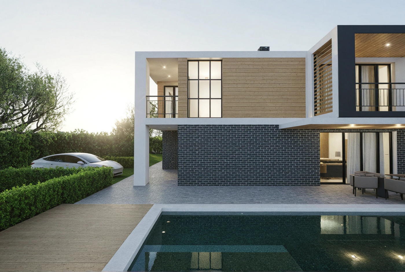 Una Villa con piscina per un committente giovane, caratterizzata da un design contemporaneo e ricercato. Le linee pulite delle facciate conferiscono al progetto eleganza e un rapporto bilanciato tra gli elementi architettonici. Ampie vetrate, volumi a doppia altezza e un grande open space contribuiscono a creare ambienti ariosi e luminosi.